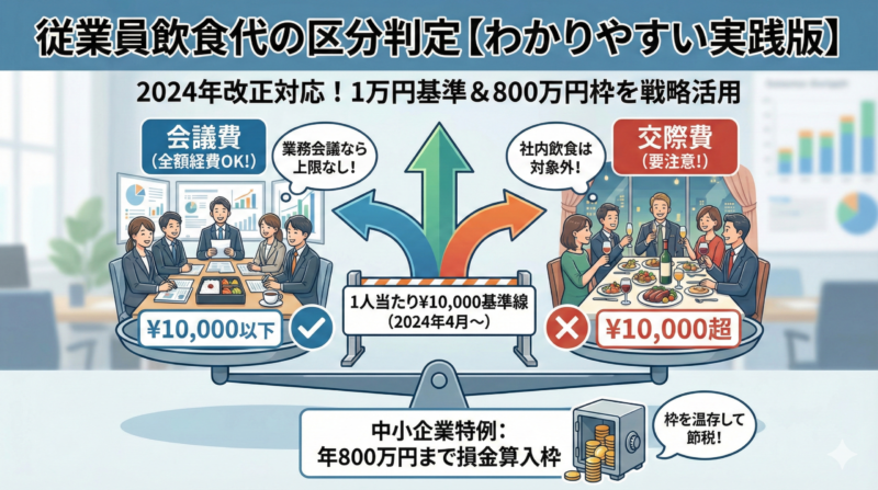 会社が従業員の飲食代を負担する場合、その処理方法により「税務上の経費になる」「給与課税される」など結果が大きく異なります。本ガイドでは、中小企業の経営者や経理担当者が押さえるべき飲食代の分類と処理方法を、具体例を交えてわかりやすく解説します。