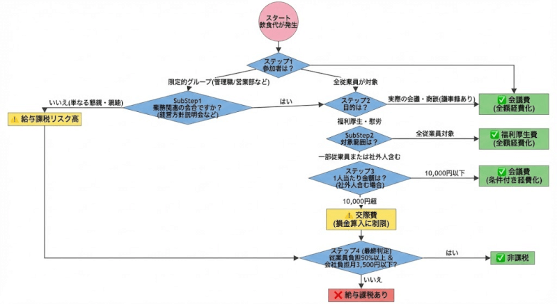 飲食代が発生した場合、以下のフローに沿って判定してください。