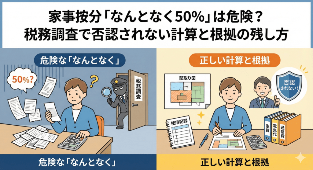 家事按分「なんとなく50%」は危険?税務調査で否認されない計算と根拠の残し方