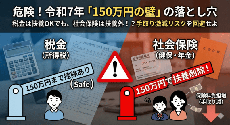 - 150万円を超えると社会保険の負担が急増: 税金の控除は残るが、保険料負担が発生