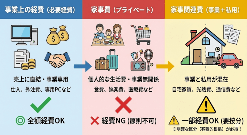 - 家事費(衣食住などプライベートな費用=経費NG)
